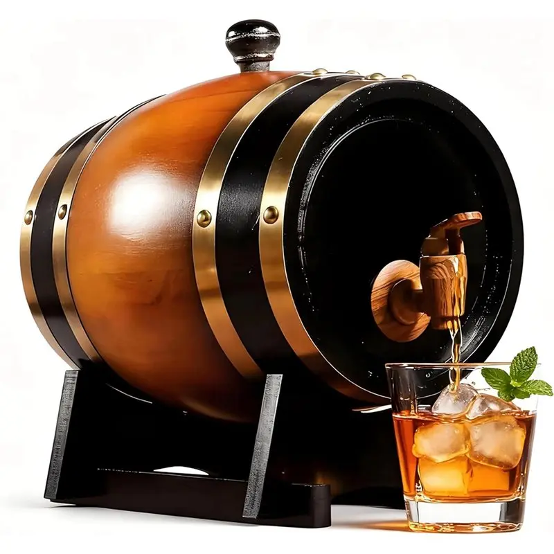 A88E-Regalo para el Hogar, Barril de Whisky de Madera de 3L, Barril de Roble Personalizado para Añejar con Soporte y Grifo, Barril de Bourbon para Hombres y Padres