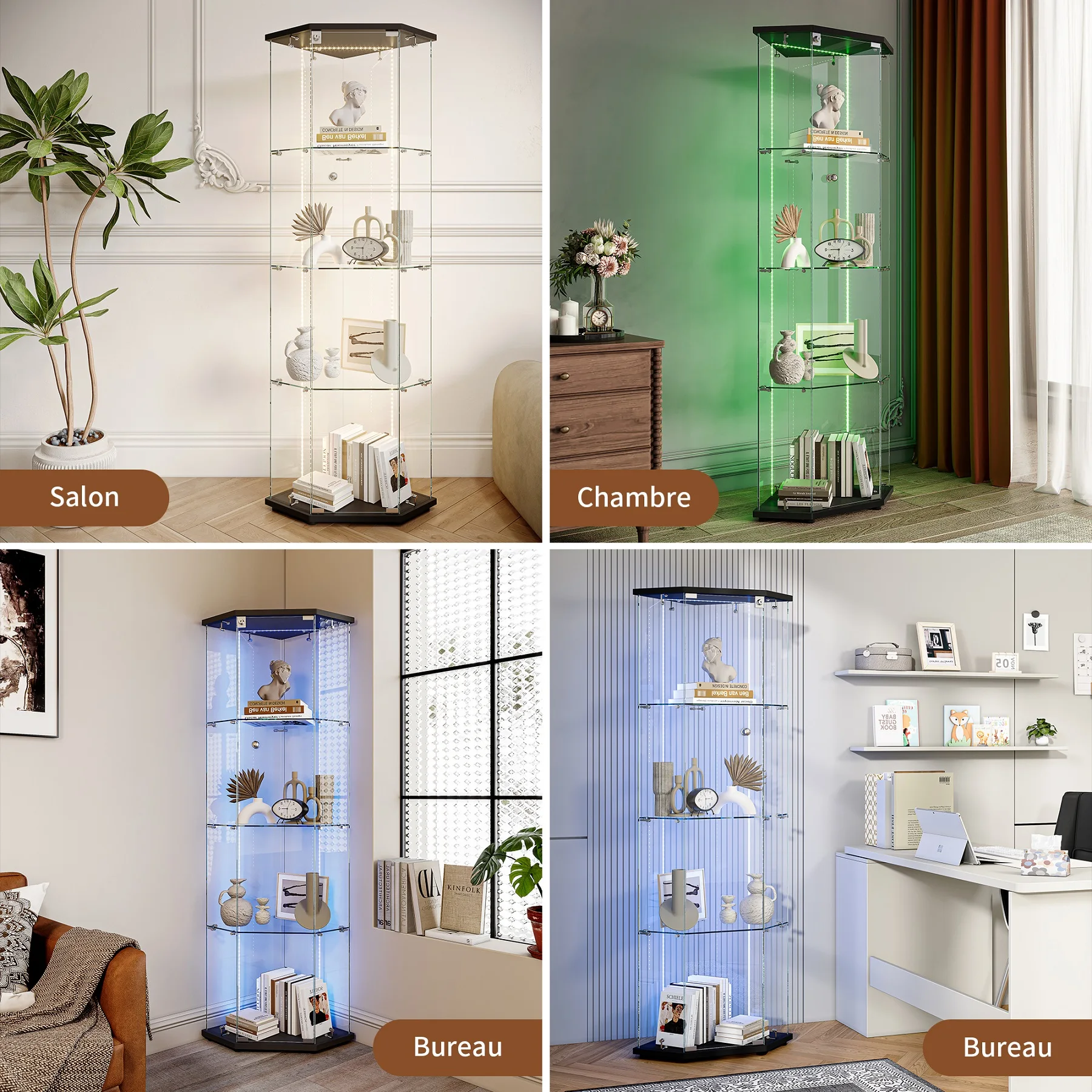 Vitrina de Esquina Rosahqnda con Iluminación LED, Vitrina Moderna de Vidrio para Exhibición de Coleccionables