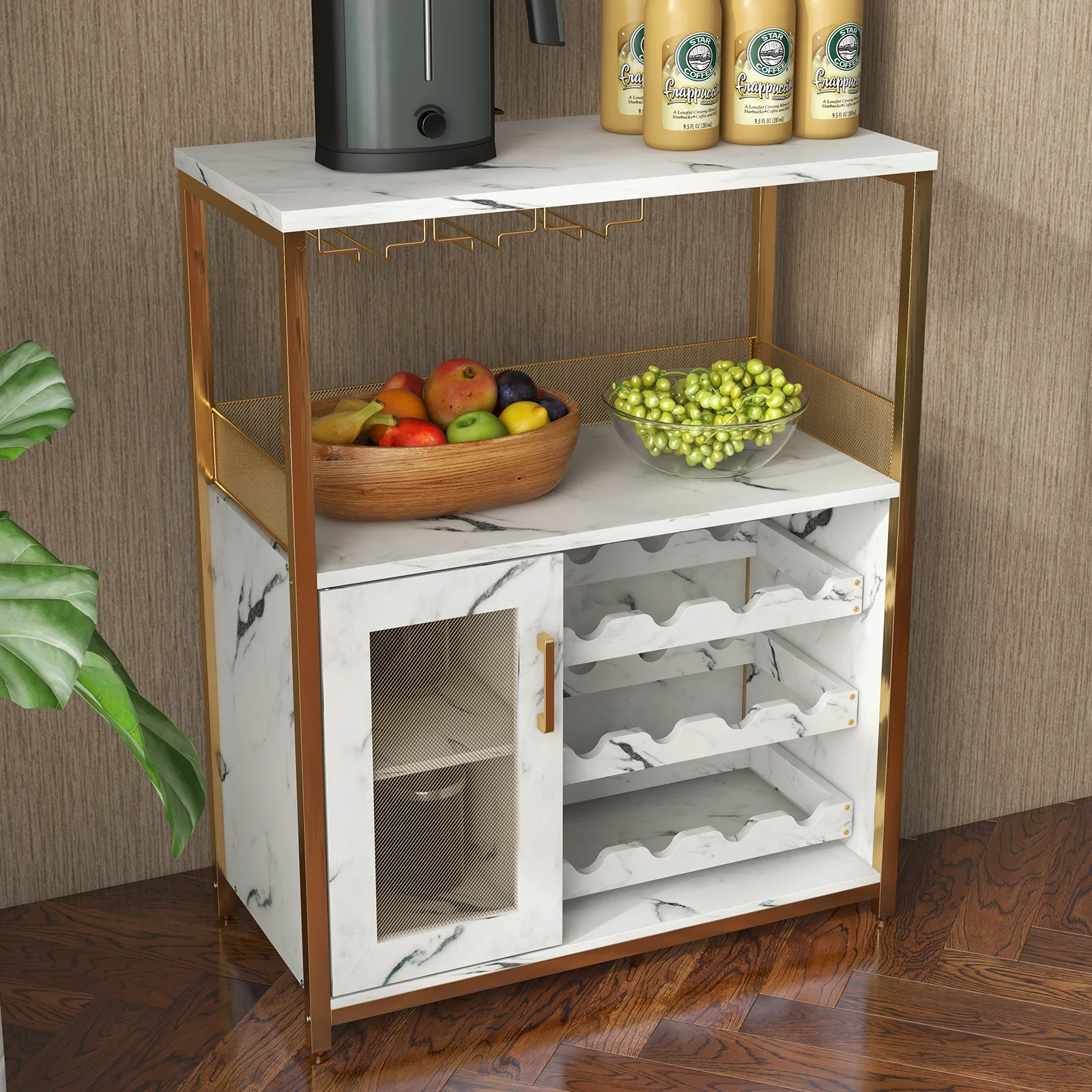 Mueble Bar con Puertas de Malla de 92 cm – Estante para Vinos Extraíble de 3 Niveles, Aparador con Acabado Dorado para Comedor y Sala de Estar de Lujo