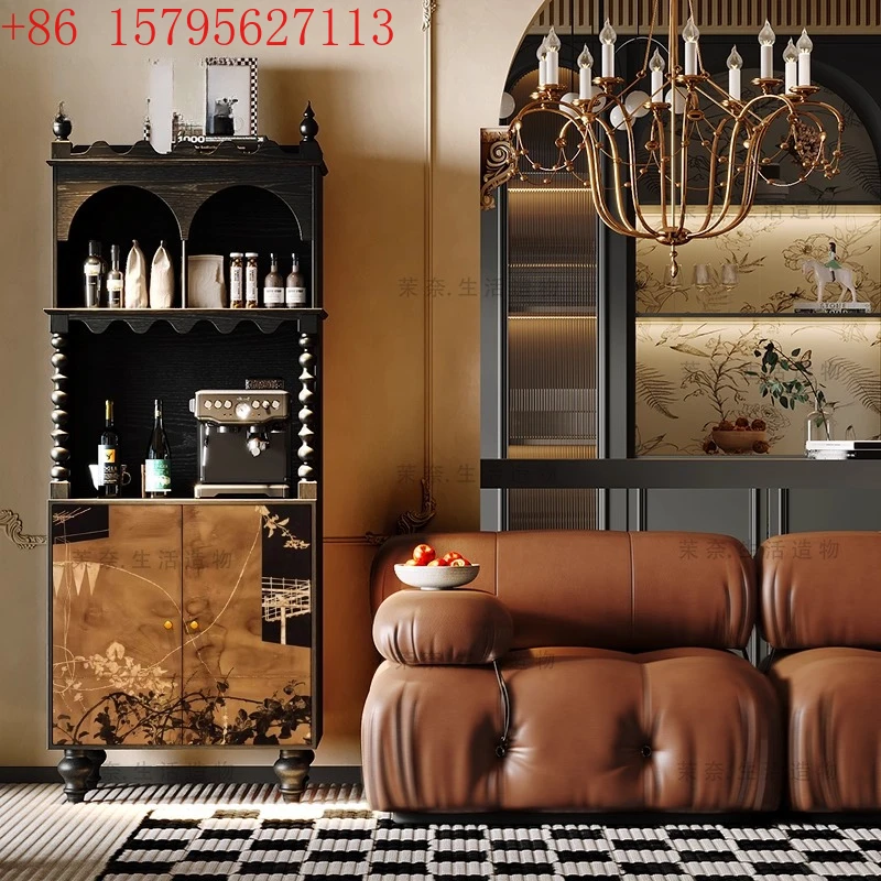 Gabinete para alimentos y vino, gabinete para café, vitrina combinada de altura para sala de estar, almacenamiento de madera maciza, almacenamiento de té