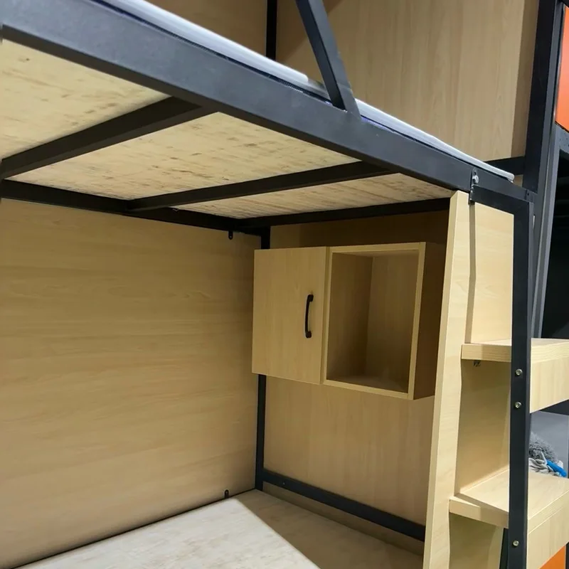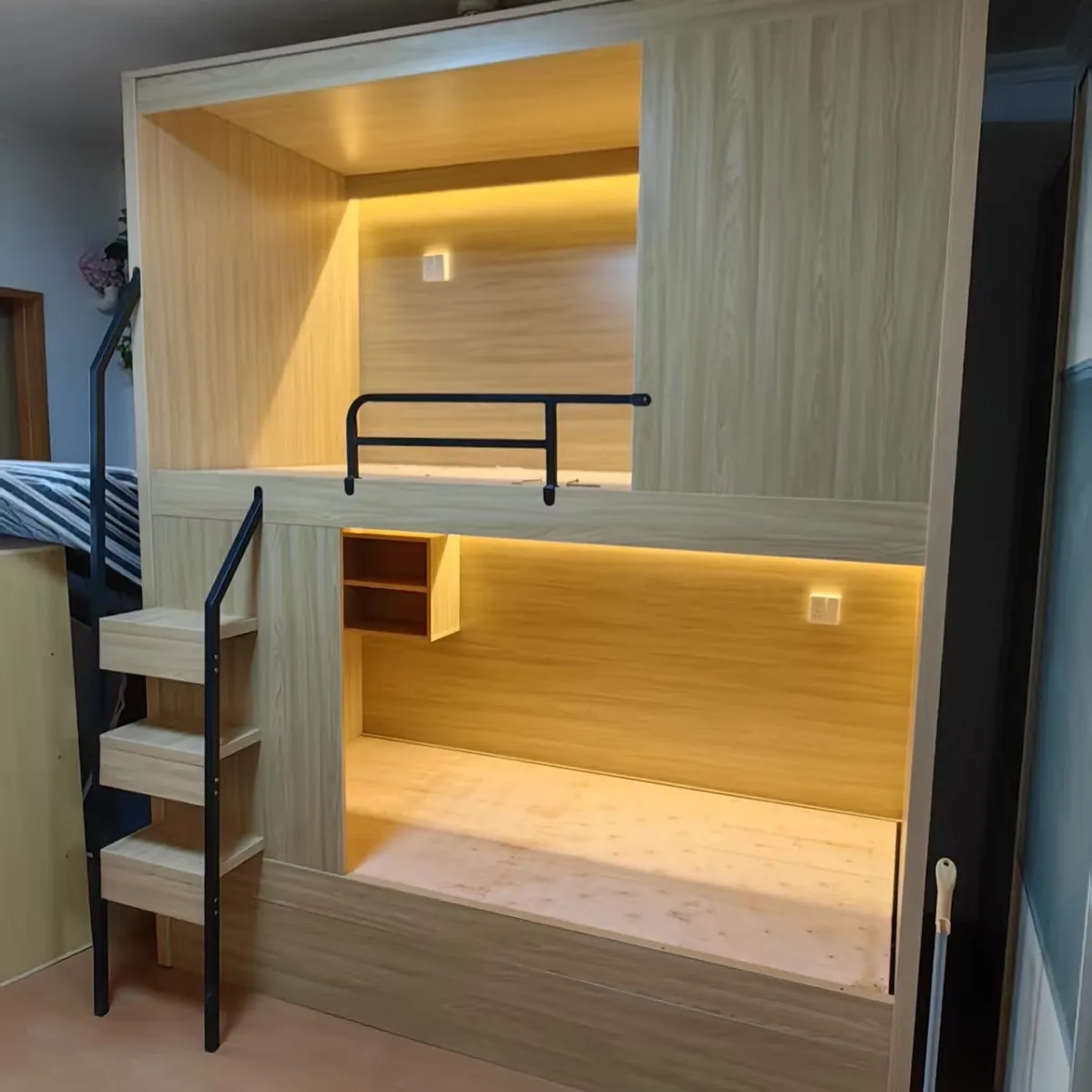Cápsula espacial de acero y madera de encendido y apagado de la cama, albergue juvenil de encendido y fuera de la cama, dormitorio escolar, personal de la cama