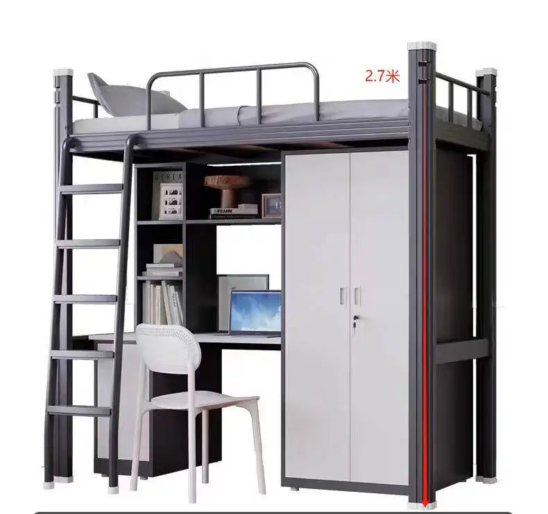Sábana elevada de hierro forjado, capa superior, cama dúplex de segundo piso, ahorro de espacio, cama pequeña para apartamento, mesa inferior, pabellón de hierro f
