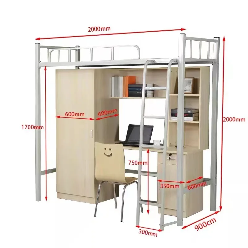Cama superior personalizada y debajo de la mesa, dormitorio, cama de Metal, apartamento escolar, cama combinada, estantería, muebles de dormitorio de integración