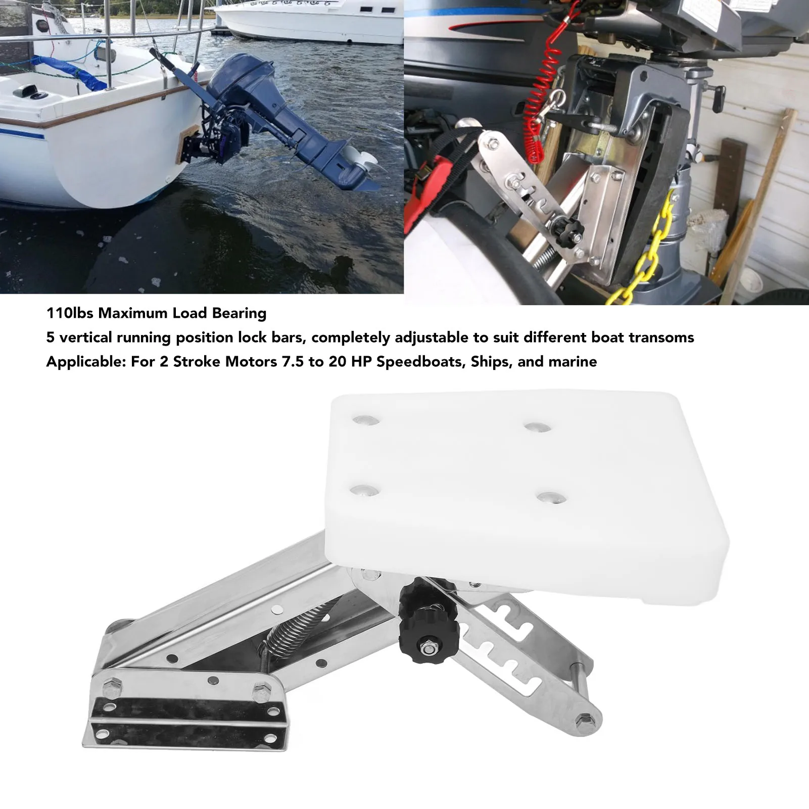 Soporte para motor fueraborda, soporte auxiliar para motor de barco de acero inoxidable 304 para motores de 2 tiempos de 7,5 a 20 HP