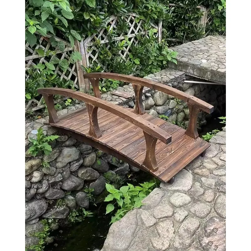 Puentes de estanque curvados exteriores con rieles laterales, decoración de puente de jardín japonés para camino de pasarela, puente de pasarela de madera