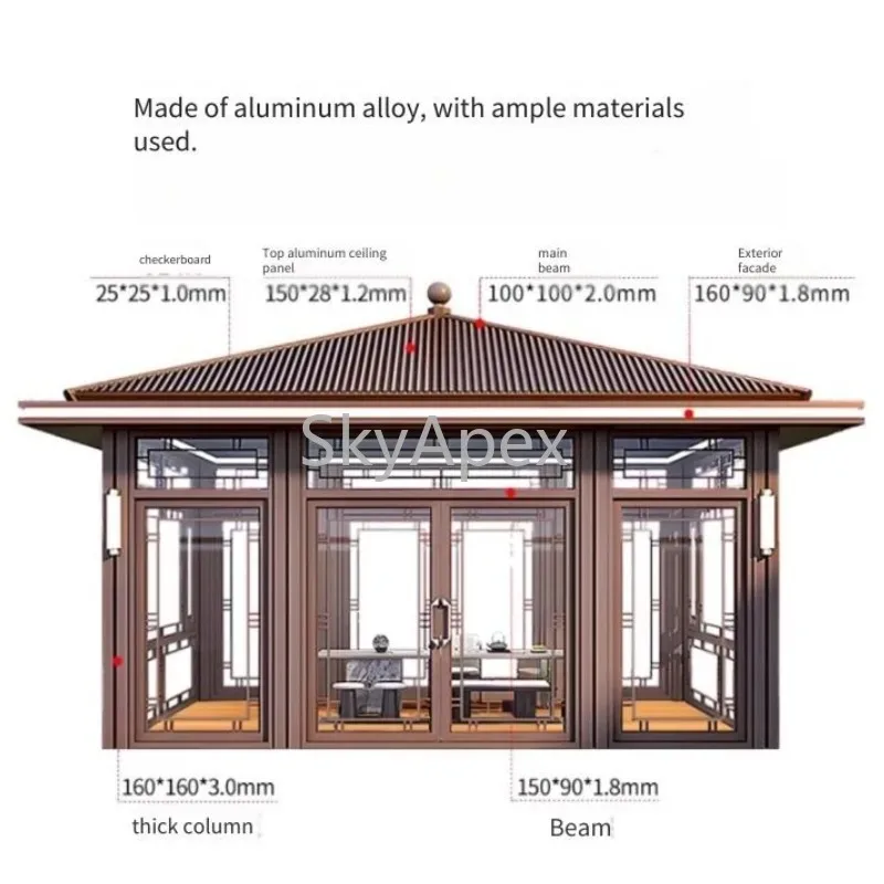 Nuevo pabellón chino moderno de aleación de aluminio, sala de sol, sala de té para Villa de lujo, patio moderno, jardín, decoración de ocio al aire libre