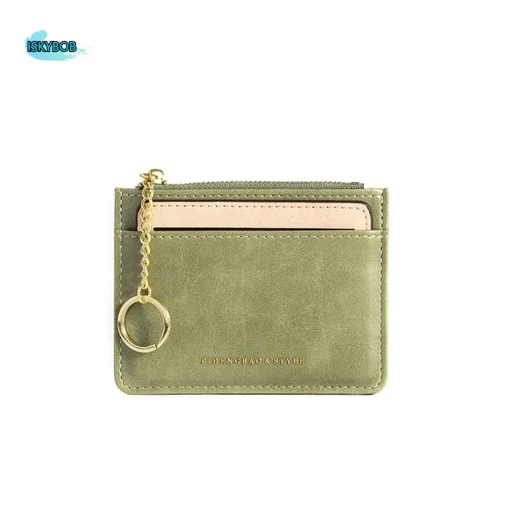 Tarjetero de cuero PU Retro, Mini billetera, tarjetero fino, llavero, monedero con cremallera de estilo coreano para mujer