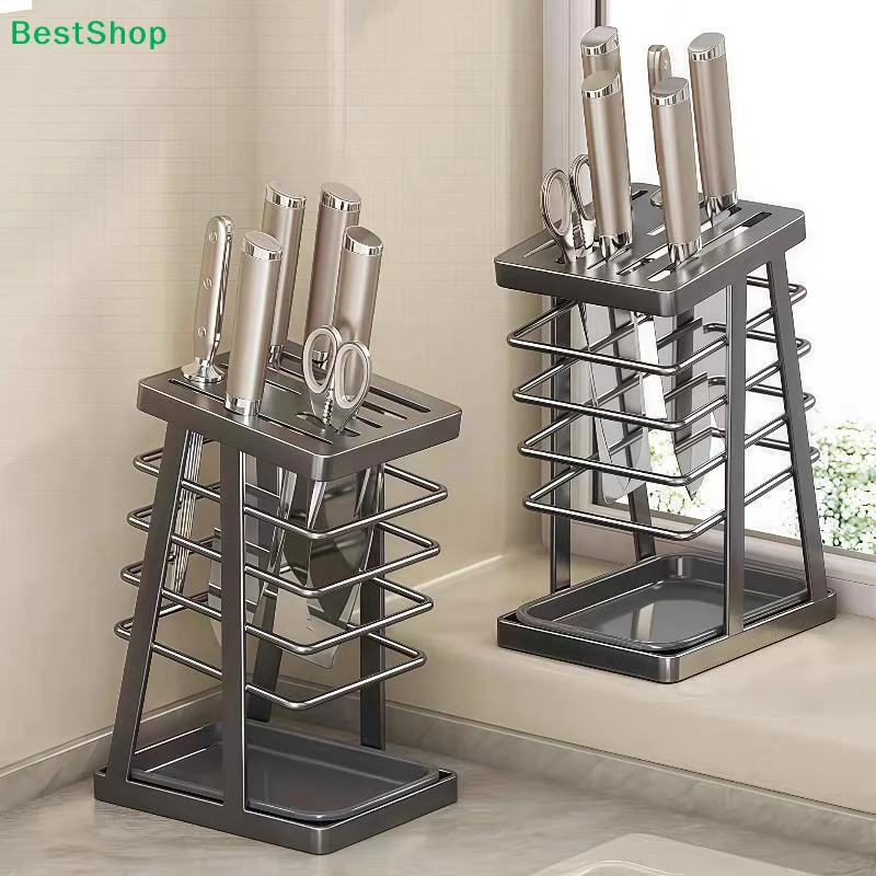 〔AG〕Portacuchillos Universal con Bandeja Recolectora de Agua - Soporte de Almacenamiento de Cuchillos de Cocina de Acero Inoxidable para Cuchillos y Tijeras