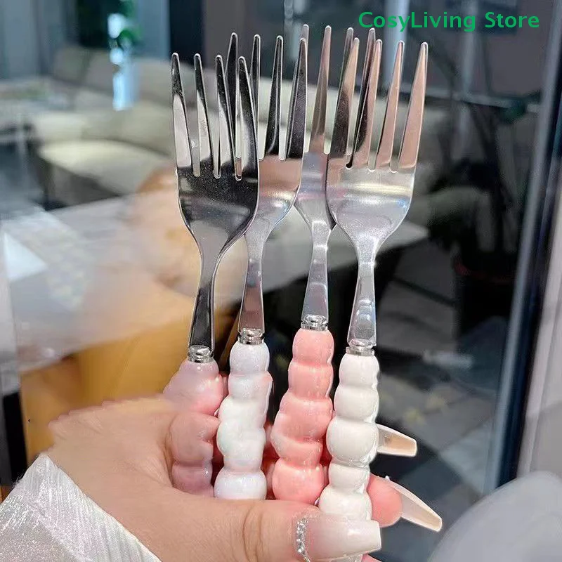 Tenedor de Acero Inoxidable para Carne, Tenedor con Mango de Perla para Postre, Tenedor para Ensalada, Tenedor para Pasta, Accesorios de Cocina