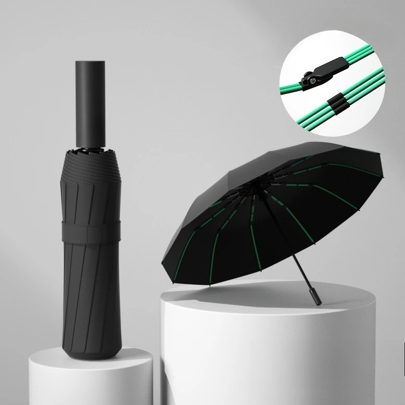 Paraguas automático para hombres y mujeres, paraguas doble plegable de costilla grande, fuerte, con diseño de hebilla de anillo