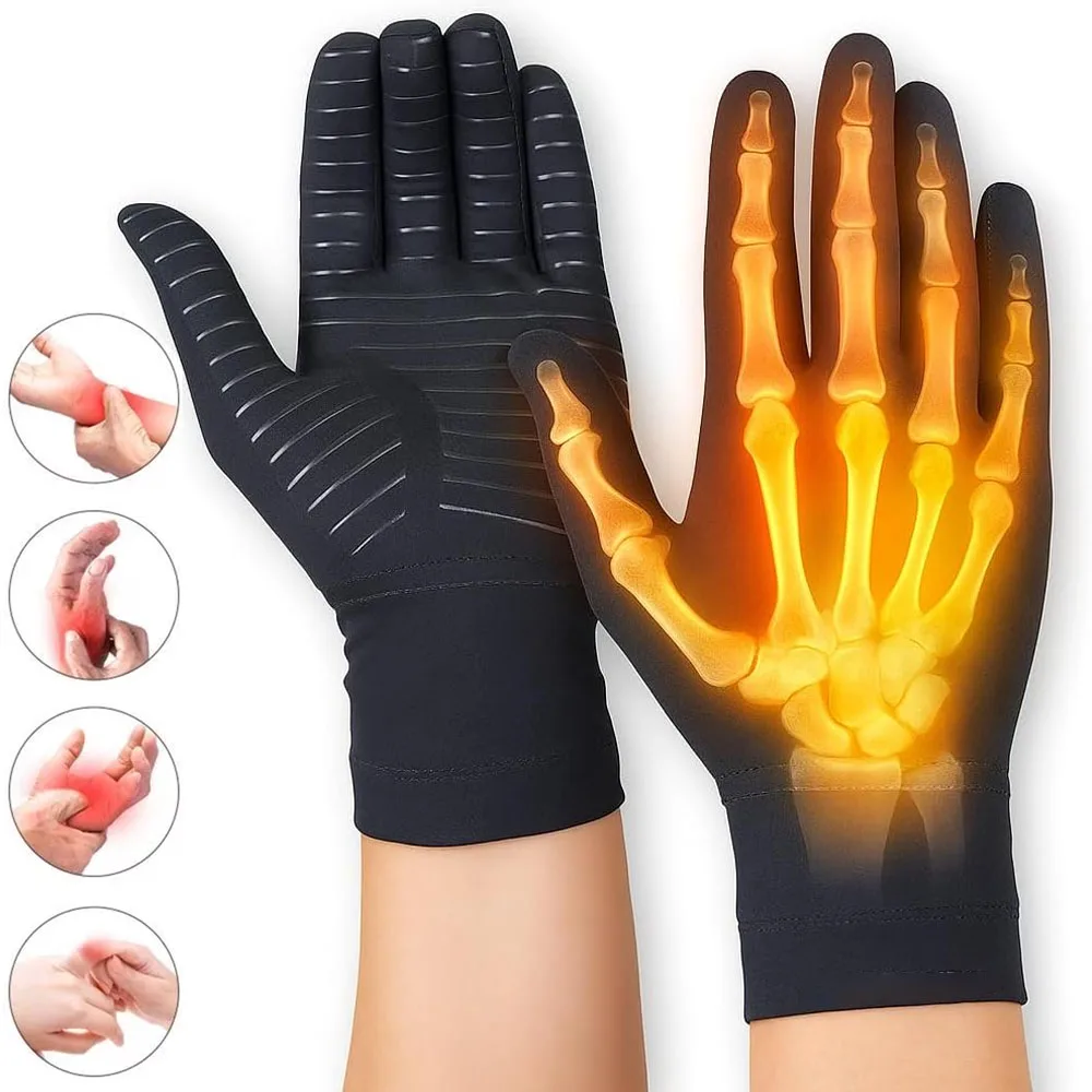 1 par de guantes de compresión de cobre para hombres y mujeres: guantes de compresión de dedo completo con infusión de cobre más alta, mano