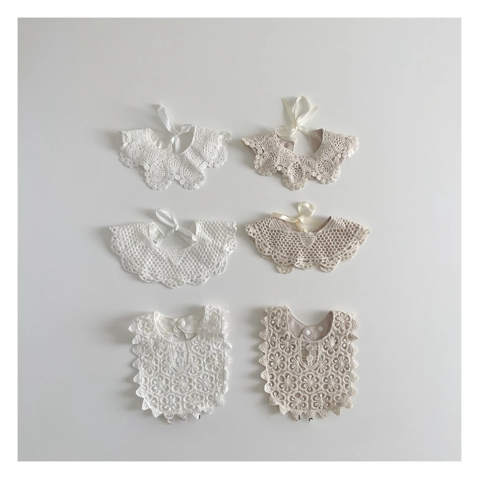 Baberos para bebé niña con cuello falso, de encaje calado, color liso, babero de saliva, de ganchillo, estilo princesa, versátil, pequeño y fresco BT14