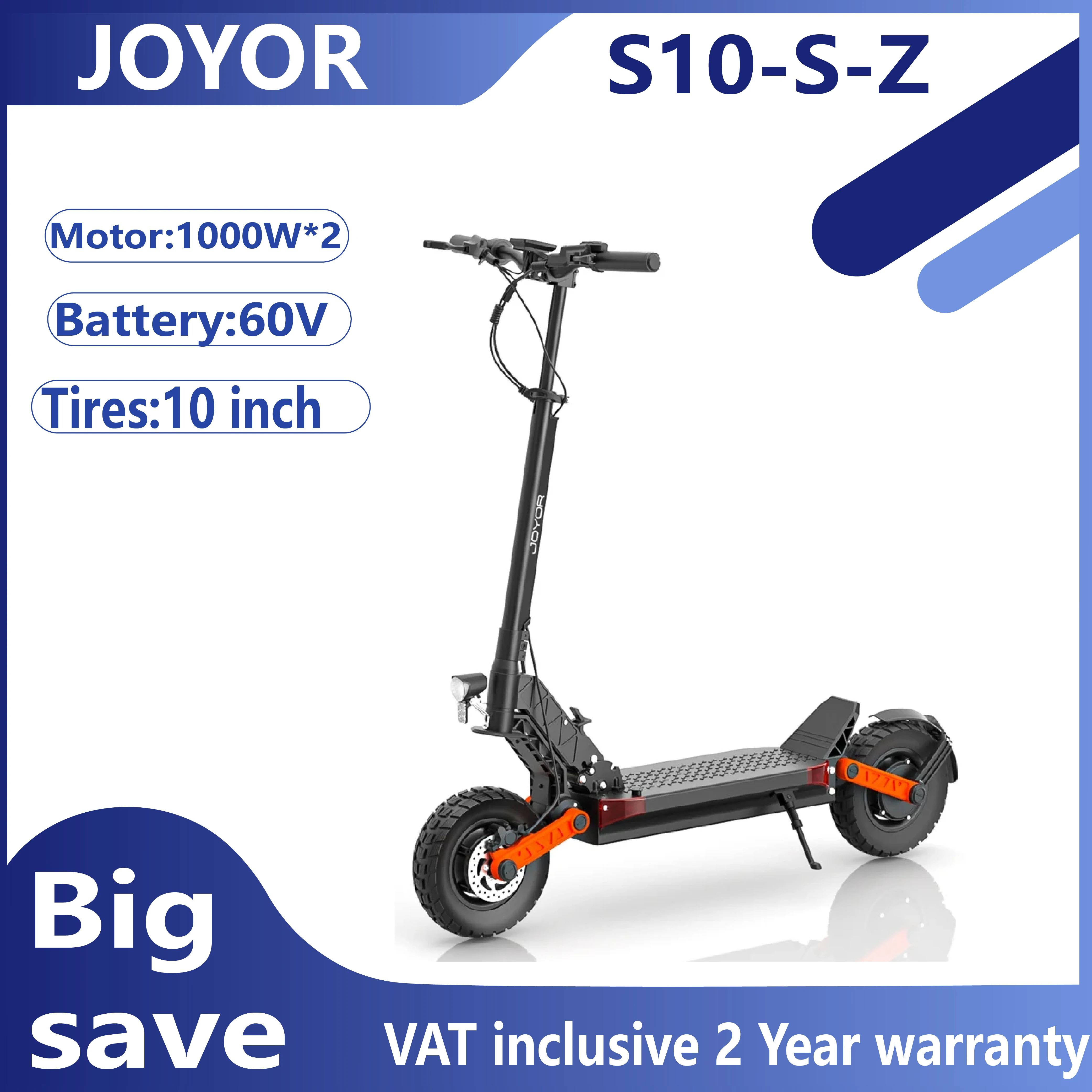 JOYOR S10-S-Z Scooter eléctrico 60V 18Ah Motor dual 2000W Neumático de 10 pulgadas Escooter para adultos 65 km/h Velocidad máxima Alcance de 70-85 km Negro
