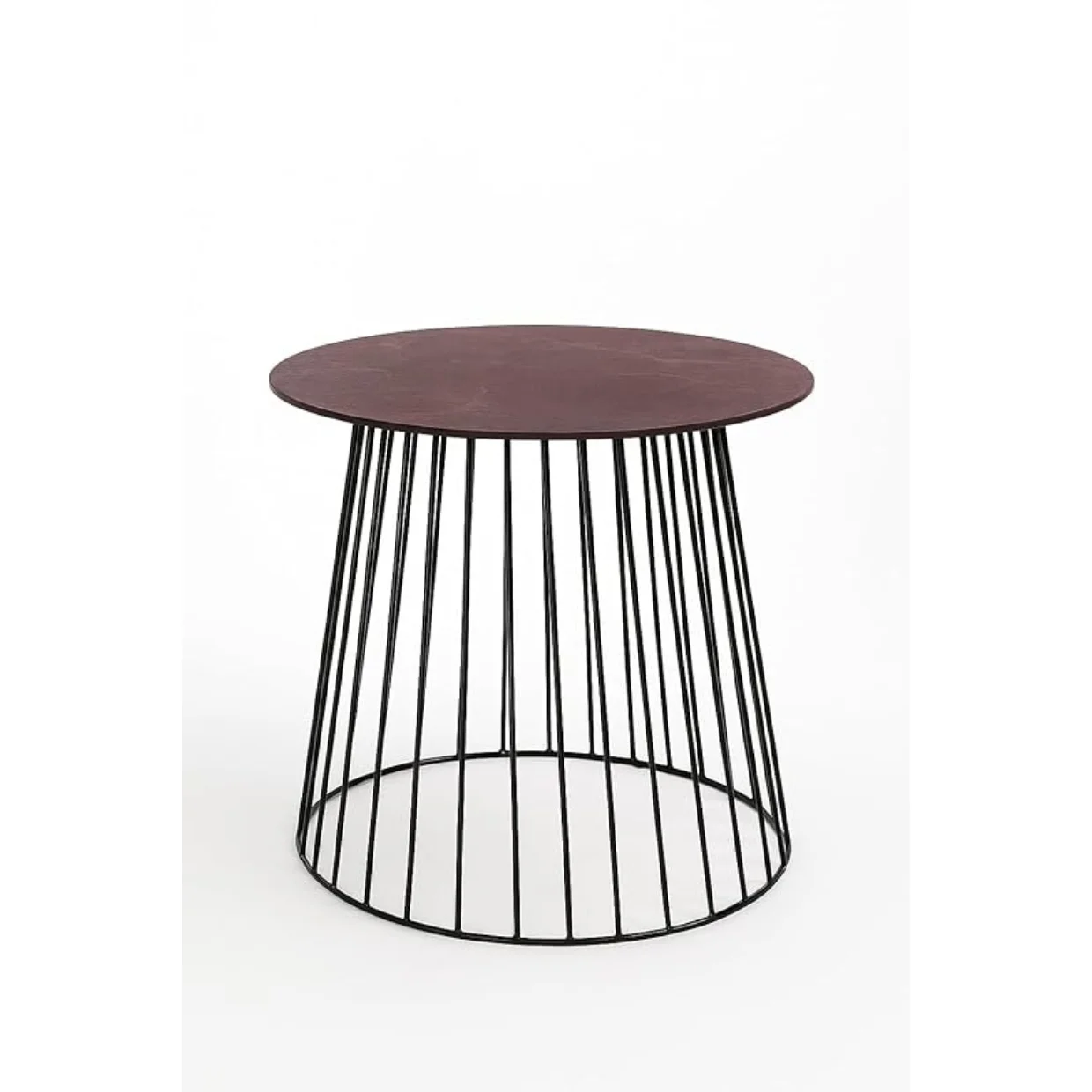 Mesa de Centro Redonda en Burdeos y Hierro Pizarra Ø 60 cm-1 cm Piedra Natural Altura Superior 57,5 cm-Diseño Moderno Fabricado en Italia para Salón y Terraza | Creaciones de Kalu