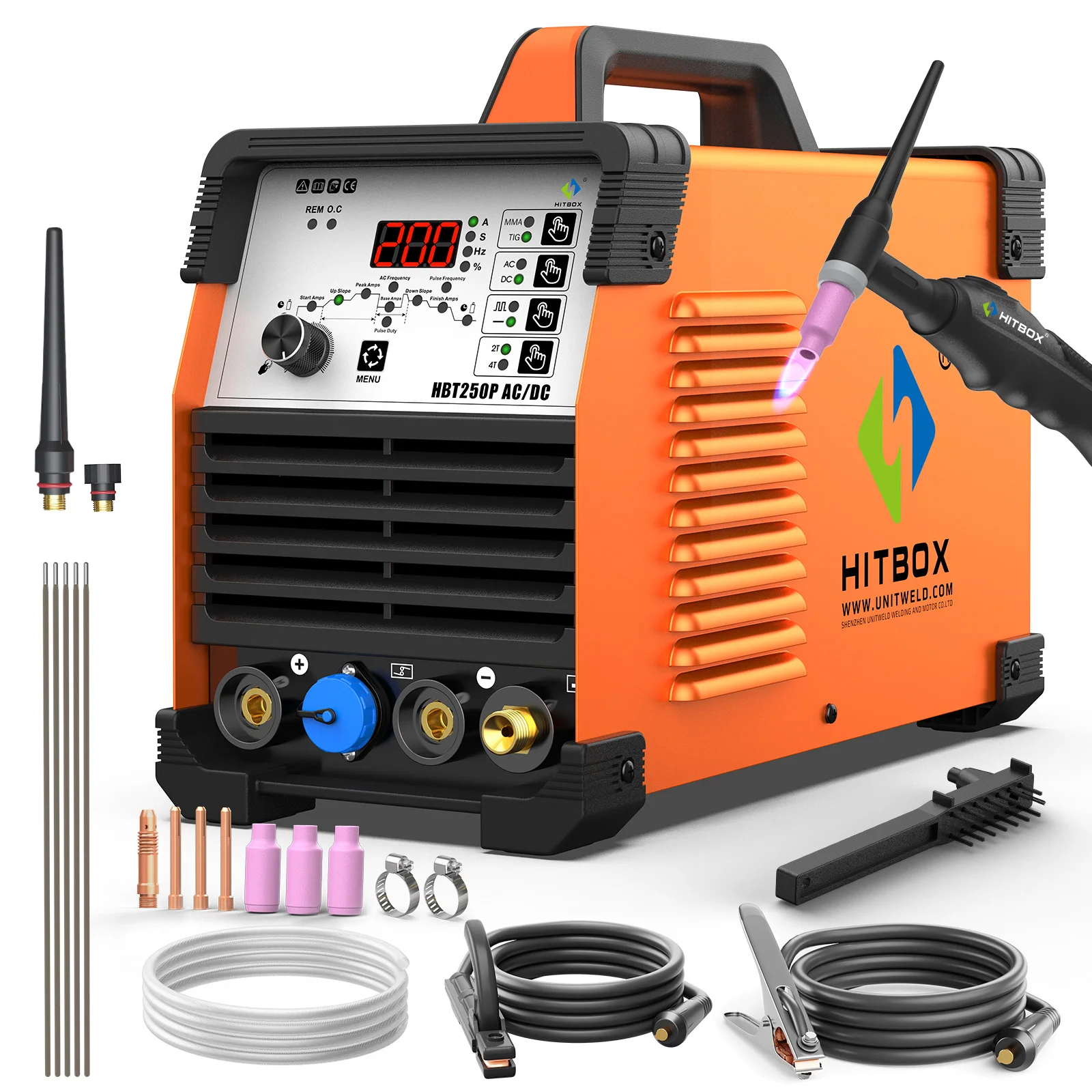 HITBOX HBT250P AC/DC 5 en 1 máquina de soldadura Tig de aluminio DC HF TIG/MMA/AC soldador de arco TIG de pulso con soldadura de argón IGB