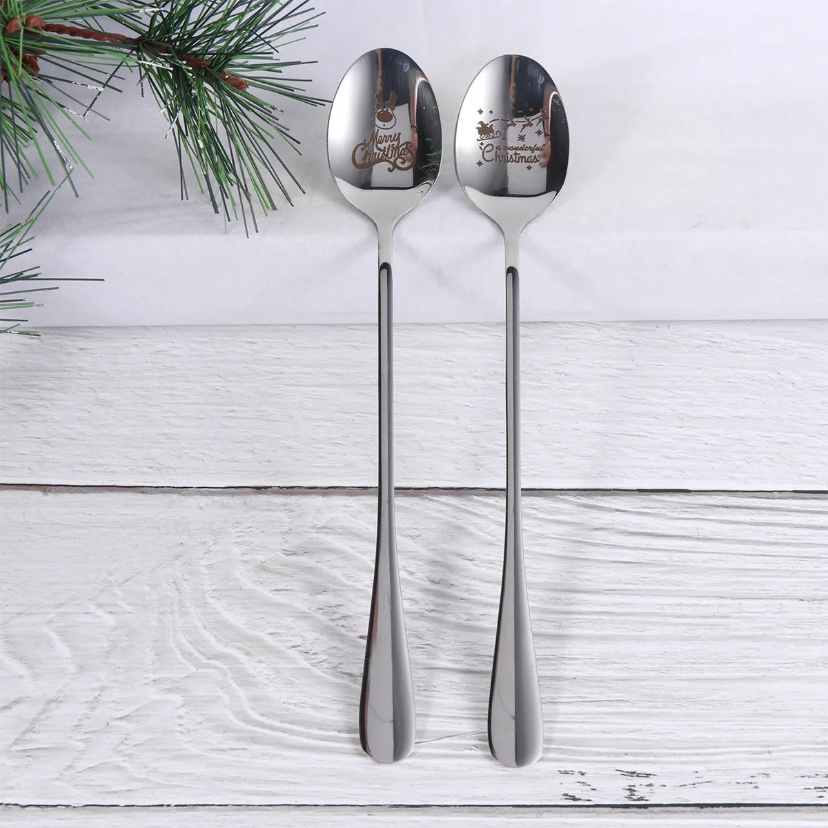 Cuchara de acero inoxidable para cocina, herramienta de cocina resistente, cuchara para sopa, guiso, mango de fácil agarre, vajilla con temática navideña, 2 uds.