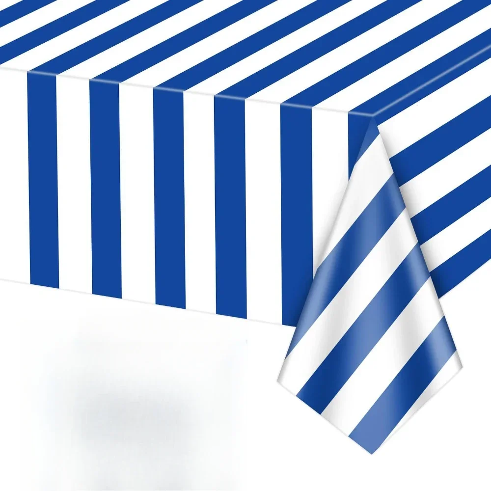 Mantel de plástico náutico a rayas azules y blancas, cubierta de mesa rectangular impermeable para decoración de comedor de cocina, fiesta en la playa, 54x108 pulgadas