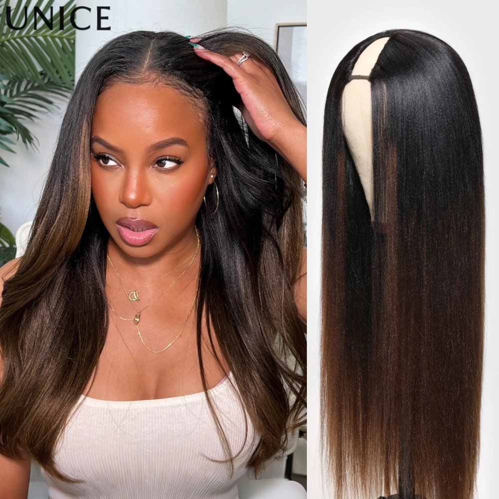 UNice-Peluca de cabello humano con cordón, cuerpo ondulado, parte en V, Color Natural, 100%, peluca con Clip en parte en V, Mini sin salir, 150% de densidad
