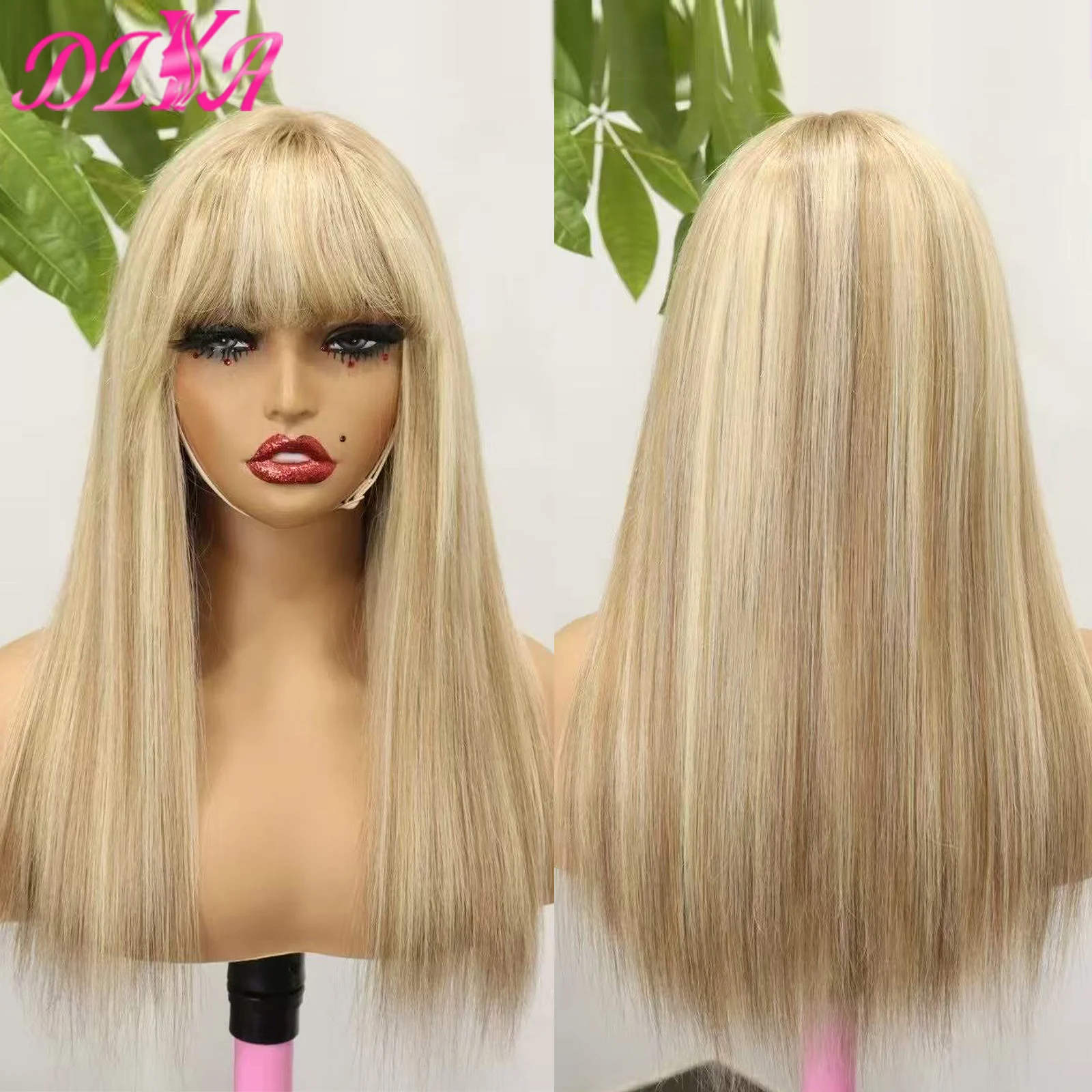 Pelucas de cabello humano liso Rubio de 280% de densidad con flequillo para mujeres negras peluca con cierre de encaje 3x1 pelucas de cabello humano hechas a máquina completas