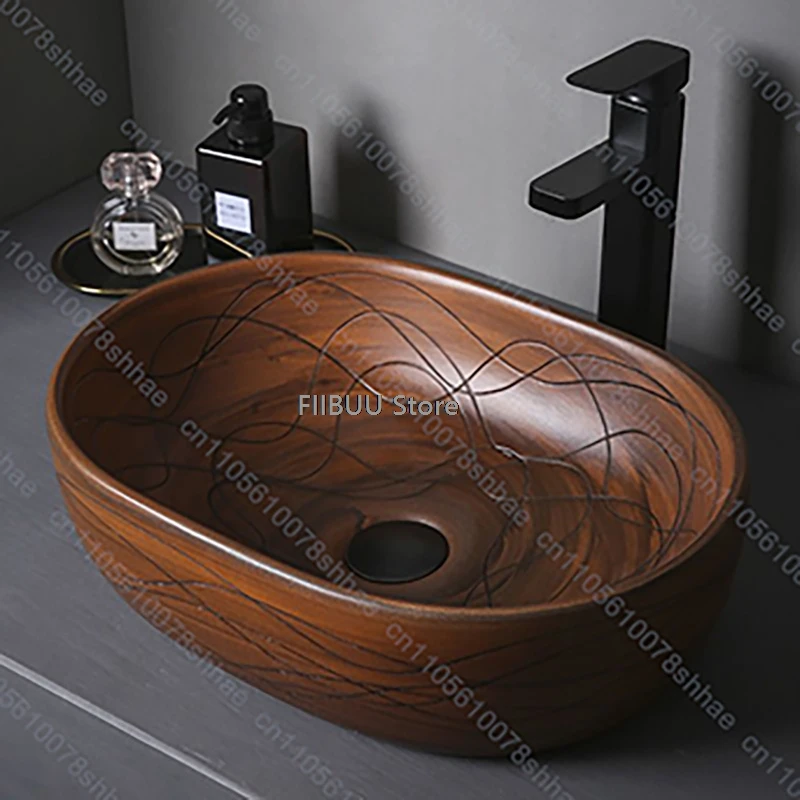 Lavabo de Cerámica Vintage para Baño, Lavabo sobre Encimera, Lavabo Retro de Porcelana para Mueble de Baño