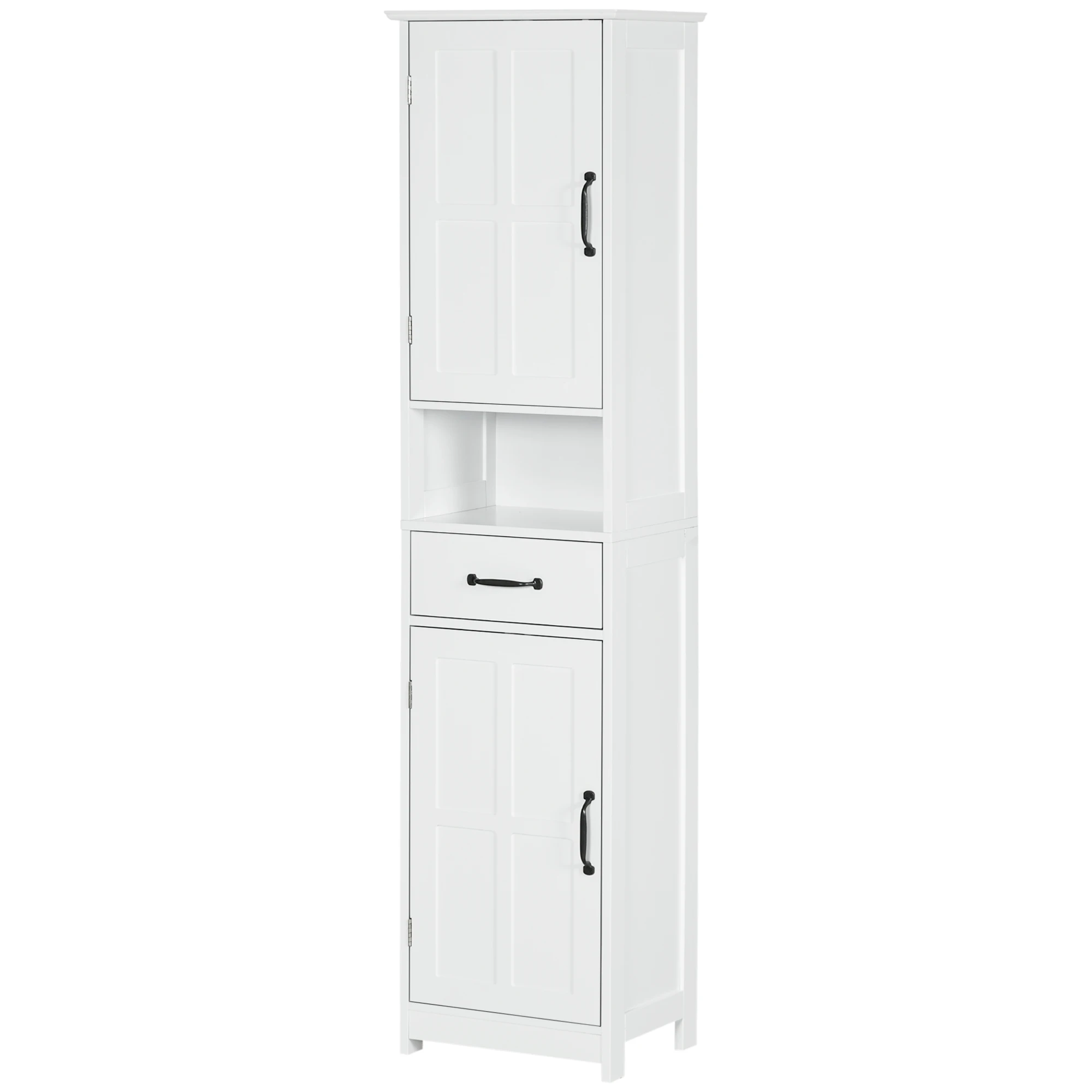 kleankin Armario de Baño Moderno con 2 Puertas 1 Cajón 40x30x164 cm Blanco
