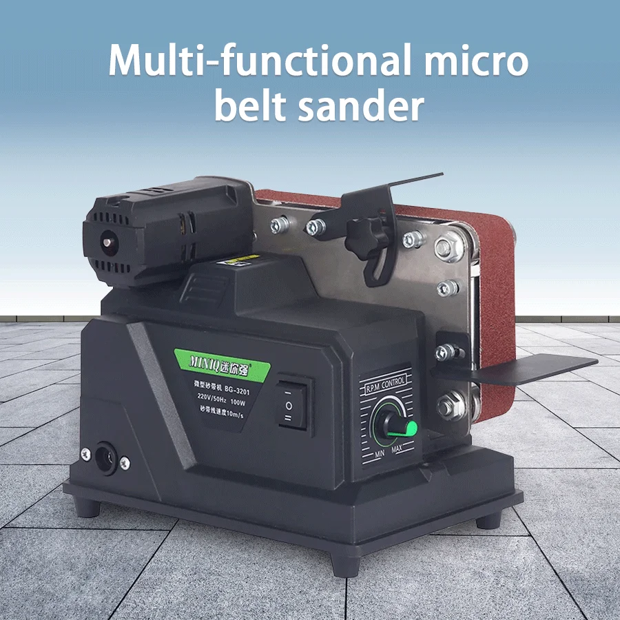 Mini máquina rectificadora de correa, amoladora de correa eléctrica, afilador de pulido eléctrico de 7 velocidades ajustables, correa de lijado de 30mm