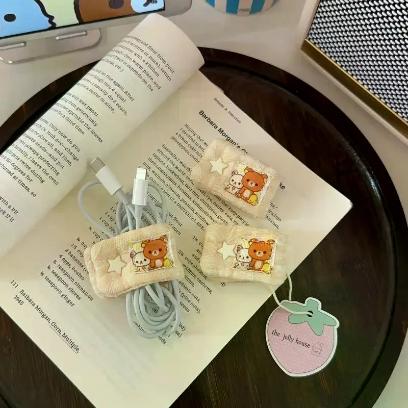 Organizador de Cables de Datos con Diseño de Rilakkuma Mashimaro, Enrollador de Cables USB Portátil, Herramienta de Almacenamiento