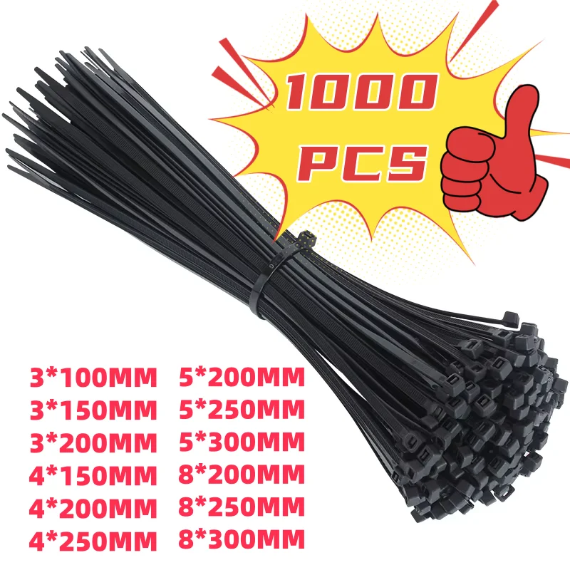 1000/100 Uds bridas de Cable de nailon de plástico correas de bridas de Cable autoblocantes Cables ajustables bucle de sujeción bridas de alambre para el hogar y la Oficina