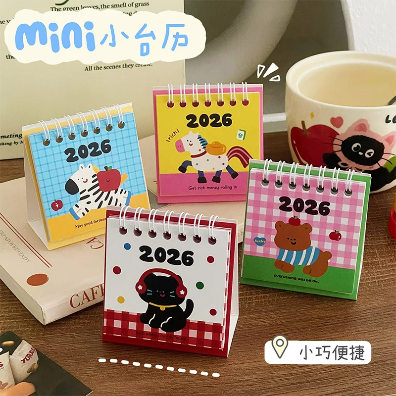Mini calendario de escritorio portátil 2026, calendario en espiral con forma de gato, libro, planificador diario bonito, organizador, gestión del tiempo, regreso a la escuela