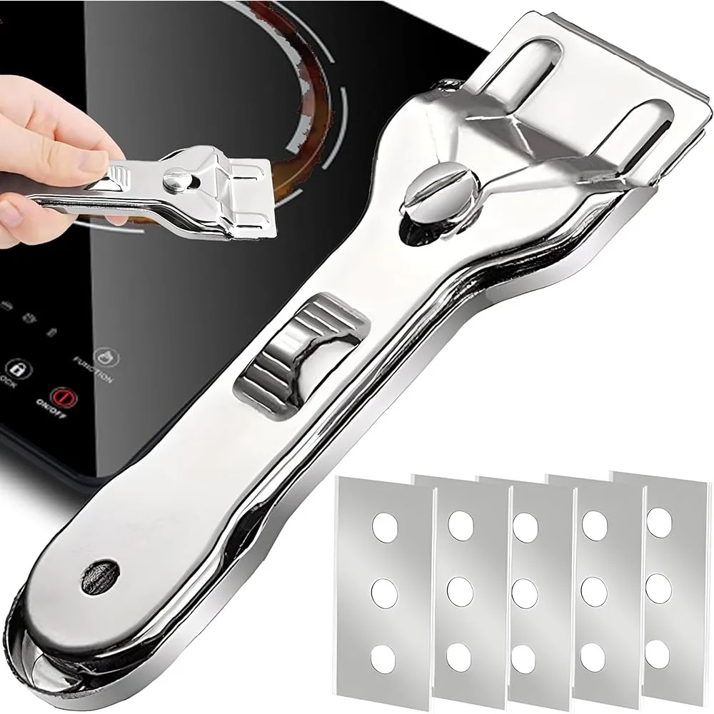 Raspador de cocina multifunción con 10 cuchillas de repuesto para limpieza de cocina, horno, vidrio y vajilla de cerámica, 1 ud.