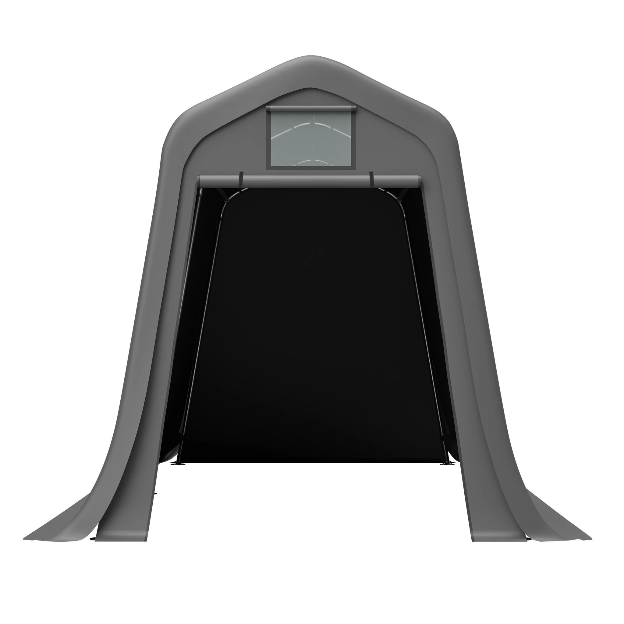 Cobertizo de almacenamiento para tienda Outsunny de 3,6 m con techo lanudo. PE impermeable, ventana de ventilación, UV/a prueba de viento, clavijas en L para motocicleta/herramientas