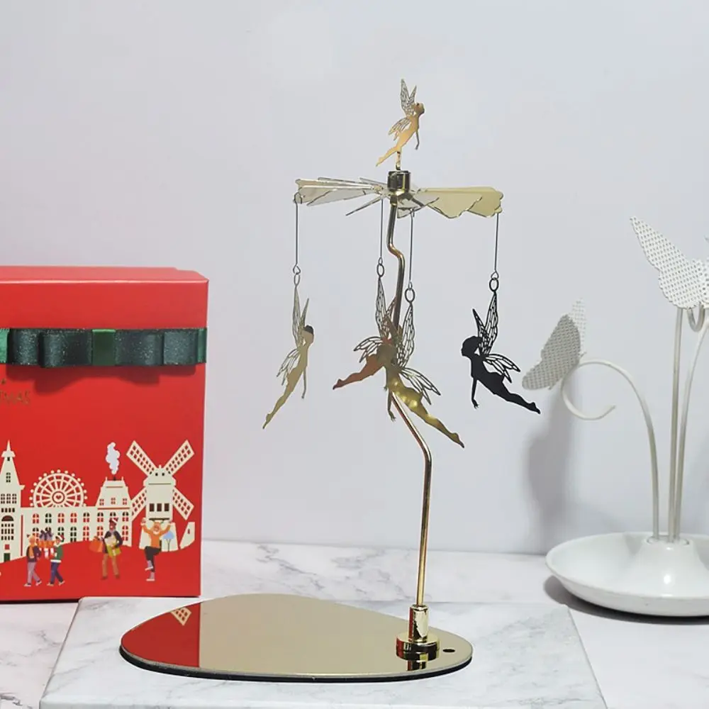 Portavelas giratorio de Metal con diseño de carrusel de Ángel hueco, portavelas giratorio de Navidad, dorado y plateado