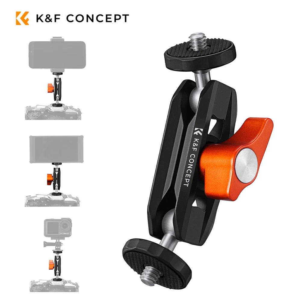 Brazo Mágico Articulado K&F Concept con Doble Rótula y Tornillo de 1/4-20, Rotación de 360° ° Rótula de Aluminio para Monitor de Cámara