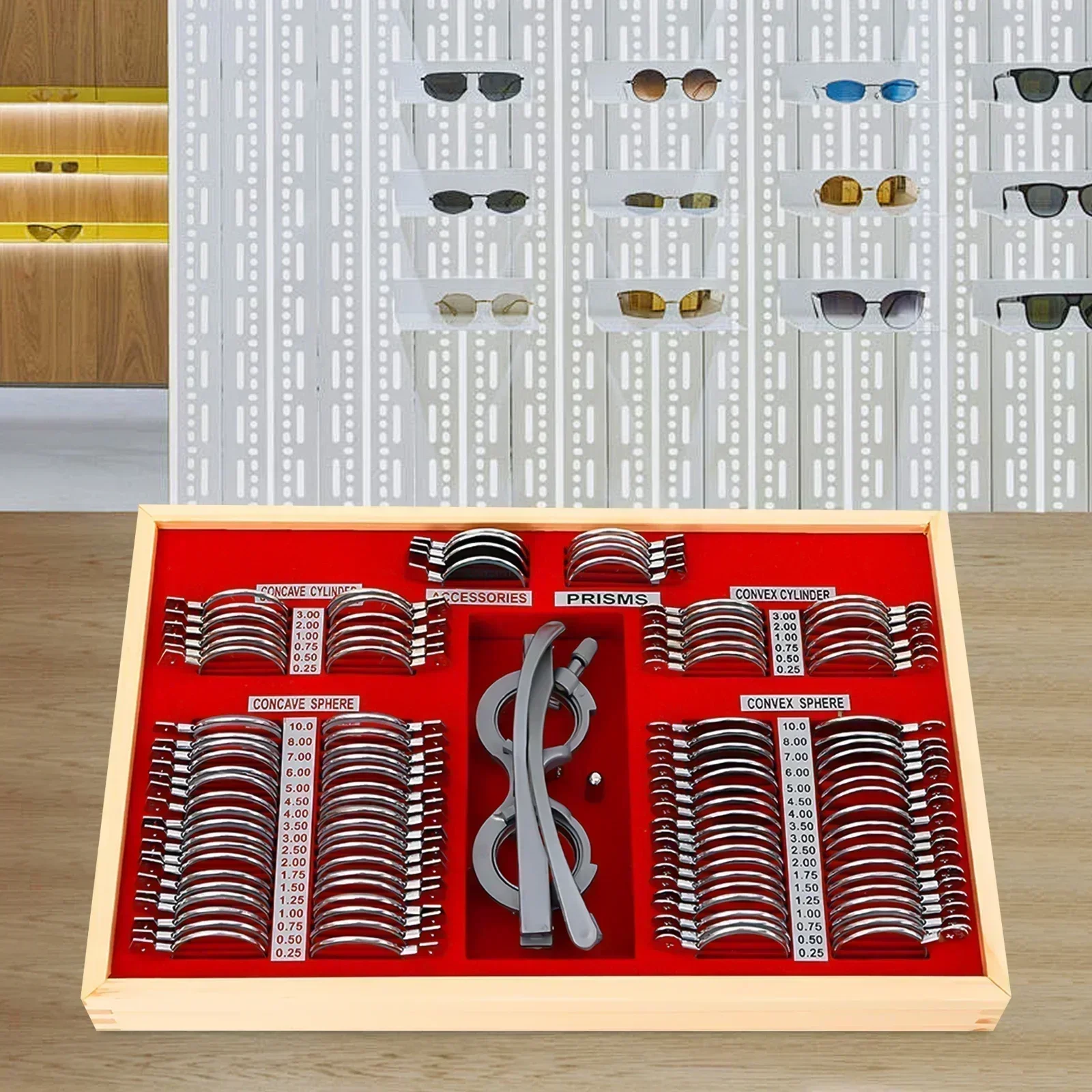 Juego de Lentes de Prueba de 104 Piezas, 38x27x6cm, Lentes Ópticas de Metal para Optometrista, con Prueba de Optometría