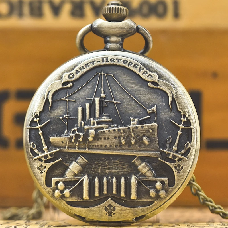 Reloj de Bolsillo Steampunk de Cuarzo con Grabado de Barco de Vapor, Estilo Retro Neutral, Colgante de Collar para Hombre y Mujer, Regalo