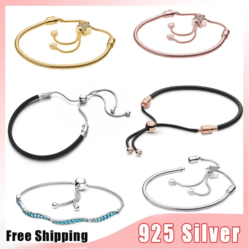 Pulsera Panjia de plata S925 de alta calidad para mujer, pulsera ajustable con estrella/redonda Moments, adecuada para vacaciones y Navidad