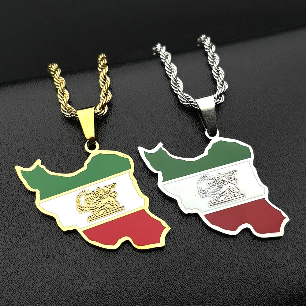 Collar con colgante de acero inoxidable con bandera del mapa de Iran, joyería para mujeres y niñas, collares de cadena de Color dorado y plateado