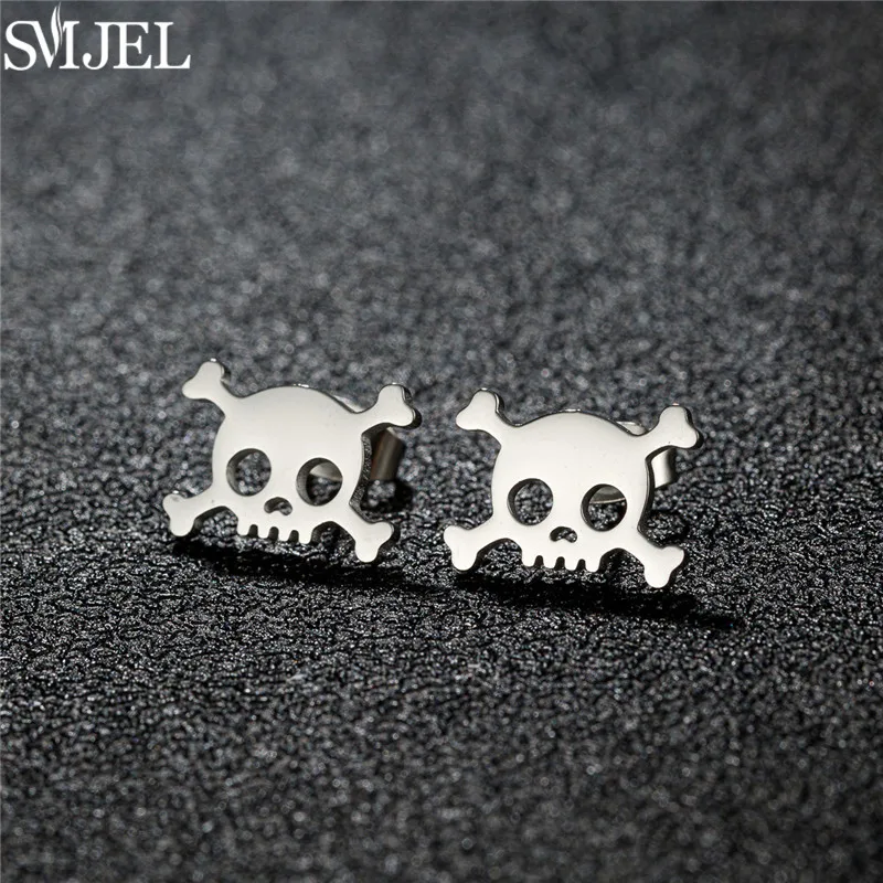 SMJEL-pendientes góticos de calavera pirata para hombre y mujer, aretes de esqueleto de acero inoxidable Punk, joyería para oreja de Halloween, regalo único