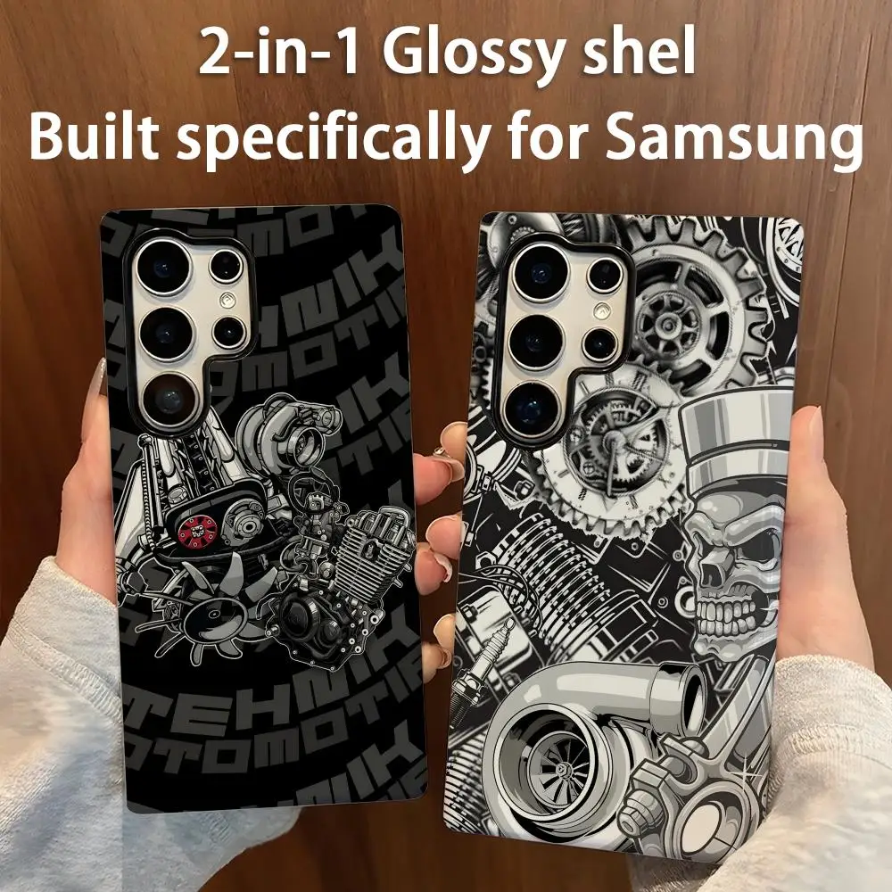 Piezas de coche, funda de teléfono con motor, carcasa brillante 2 en 1 para Samsung Galaxy S25 S24 S23 S22 S21 Plus Ultra