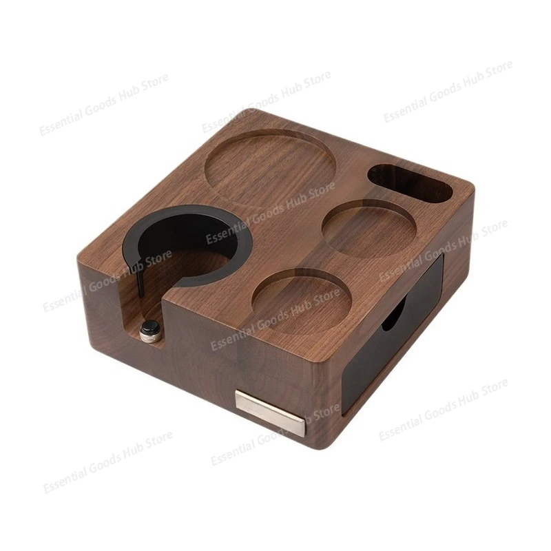 Prensa de café de nogal, dispensador de café en polvo, martillo para prensar café, accesorio para máquina de café italiana, base de almacenamiento