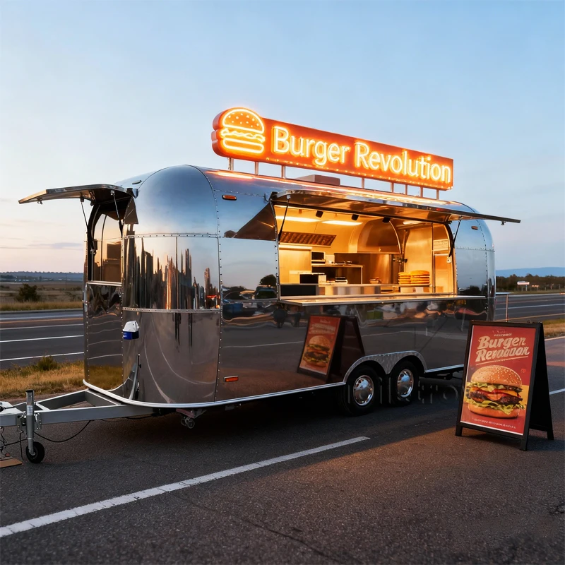 Remolques de comida y camiones de comida de forma cuadrada personalizados con equipo de cocina comercial