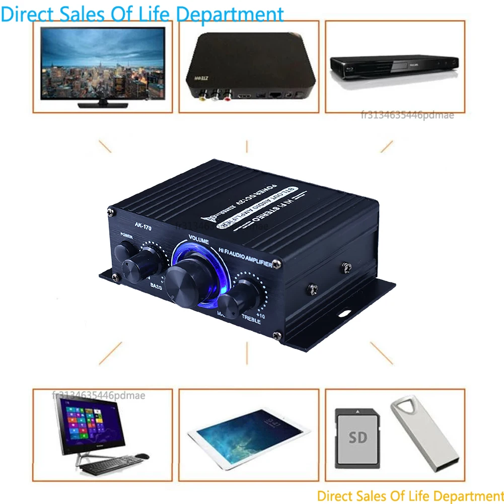 Amplificador de Coche Bluetooth AK 170 12V 200W HiFi Estéreo, Mini Amplificador de Potencia de 2 Canales con RCA para Uso en Cine en Casa
