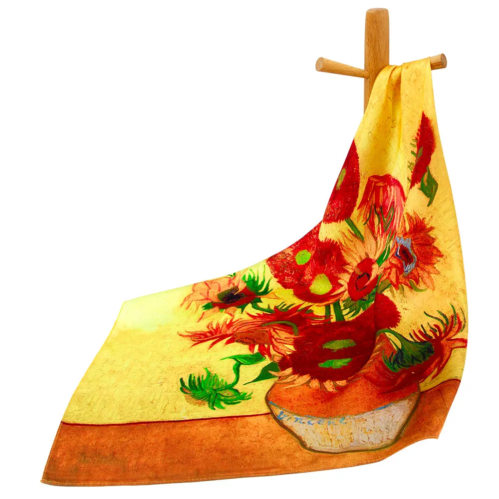 Bufanda 100% de seda auténtica de 53cm para mujer, bufandas para hombre, pañuelo cuadrado para la cabeza para invierno, regalos para amigos, 15 girasoles en un jarrón