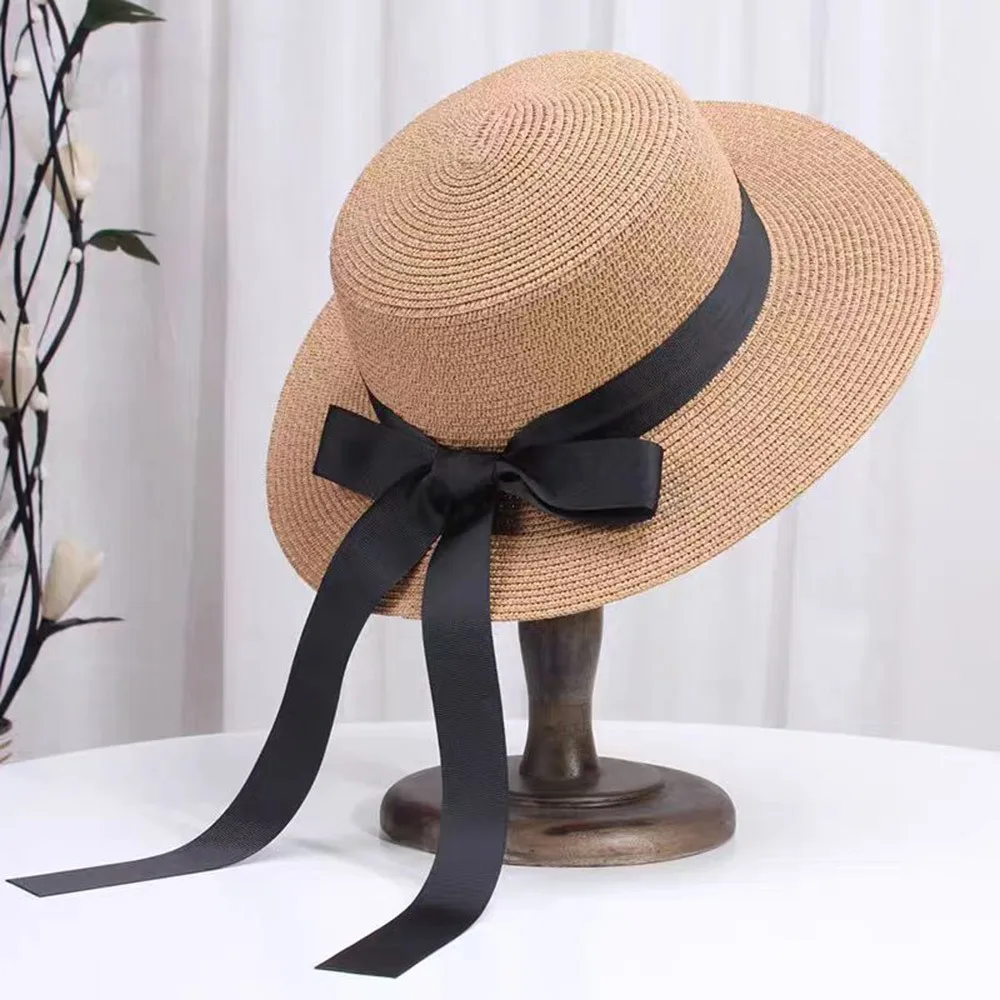 Nuevo Sombrero de paja con lazo, protección solar, sombreros transpirables para mujer con ala grande, sombrero