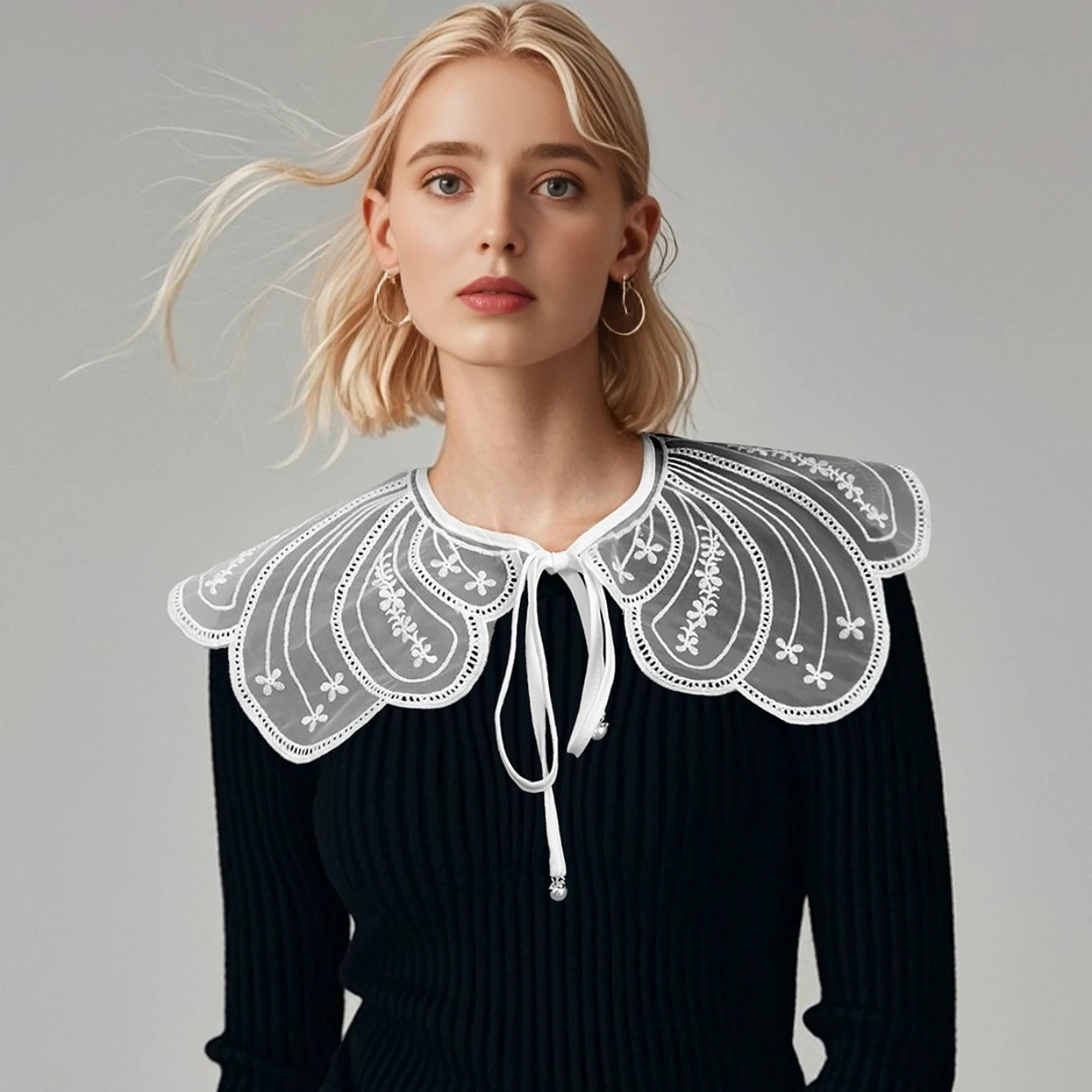 1 pieza de gasa fina bordada, cuello de Chal pequeño vintage, cuello falso de flores, borde de volantes de encaje grande blanco para niños, decoración