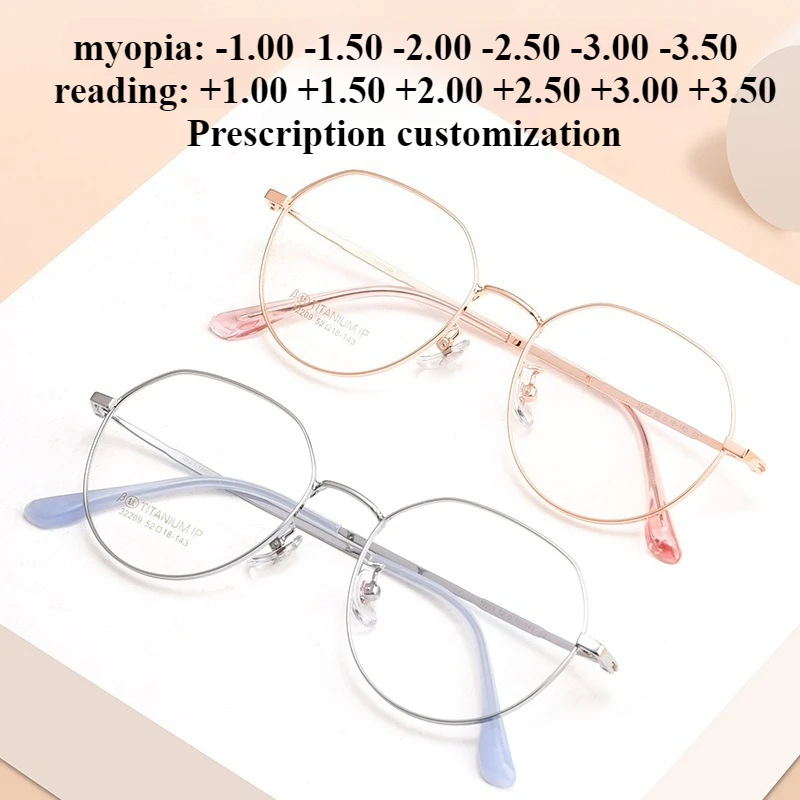 52-16 montura Retro de cara pequeña, montura de gafas de titanio puro para mujer, montura de gafas para miopía, gafas de lectura con bloqueo de luz azul