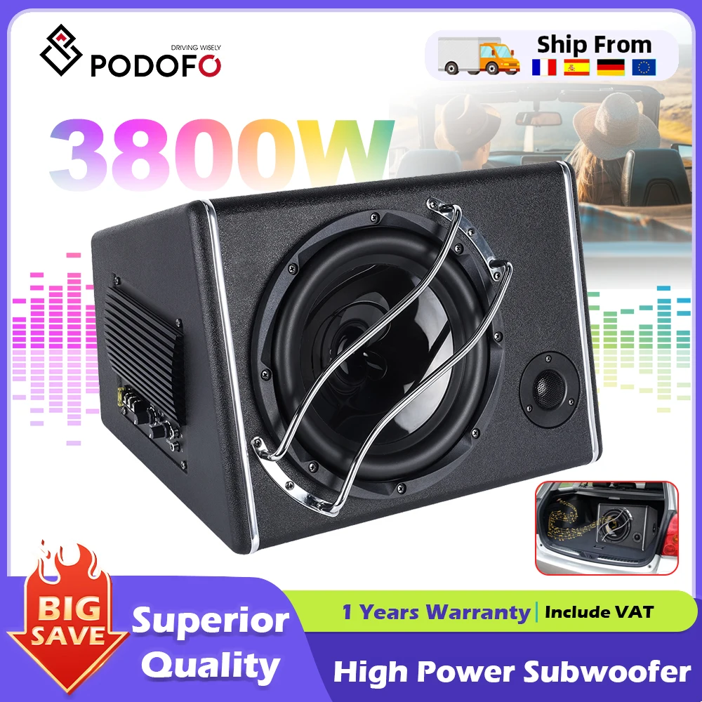 Podofo 1 Juego de Subwoofer para Auto de 10 Pulgadas y 3800 W con Caja Acústica, Subwoofer de Banda Pasante para Auto, Camioneta, Barco Marino de 12 V