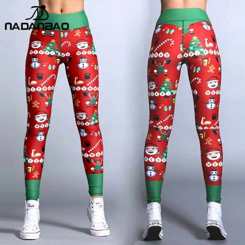 Leggings de mujer con estampado de lazo de Papá Noel de Nadanbao, pantalones divertidos para fiesta de Navidad, pantalones ajustados de cintura alta, pantalones deportivos para yoga