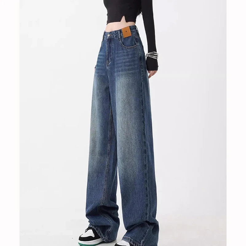 Pantalones Vaqueros de Cintura Alta para Mujer, Estilo Coreano Retro, Anchos y Holgados, de Mezclilla, Delgados, en Oferta