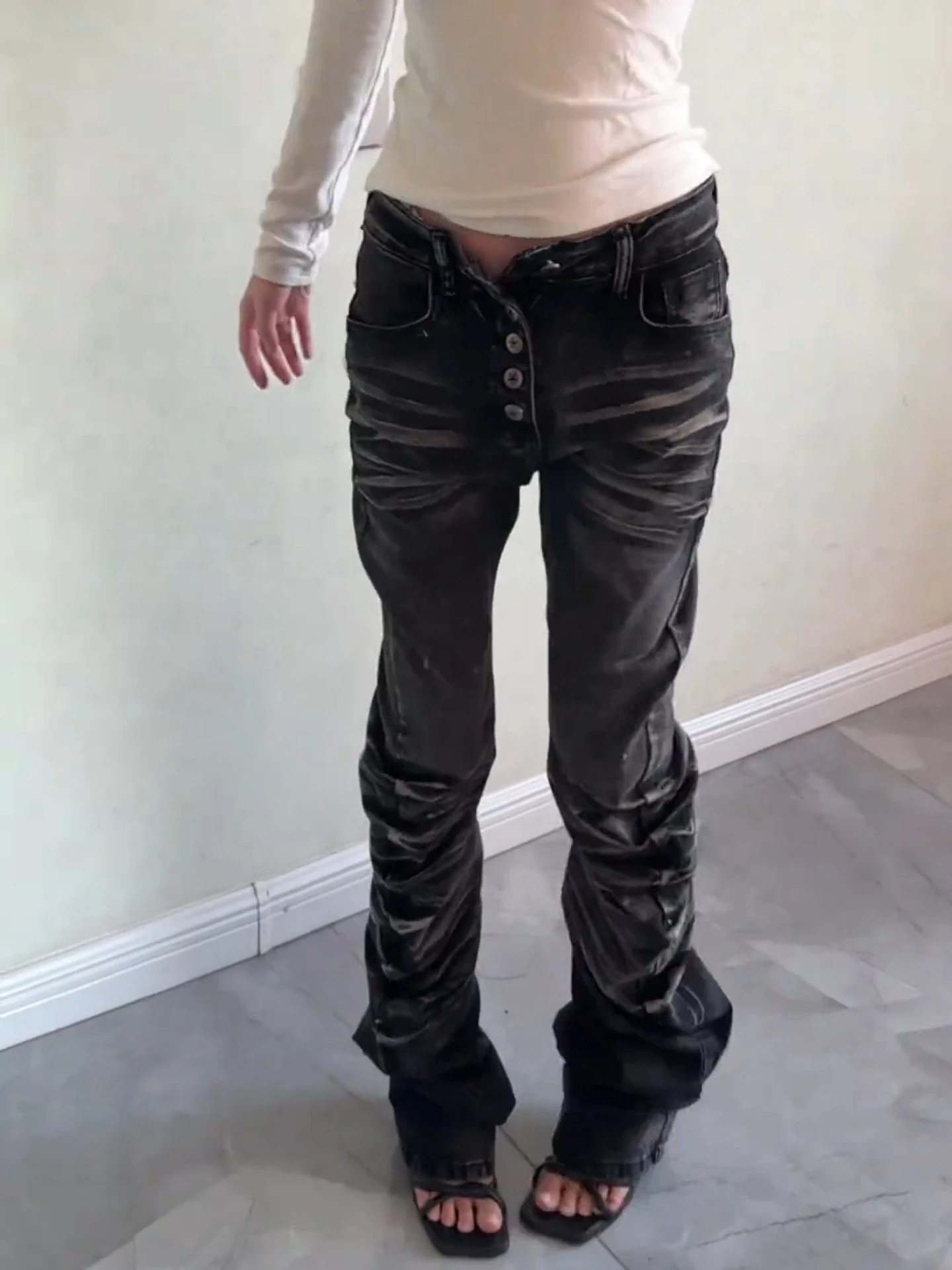 Jeans Ajustados Góticos Retro Lavados y Desgastados Estilo Y2K American Hot Girl Punk Moda Plisada Casual Streetwear de Industria Pesada